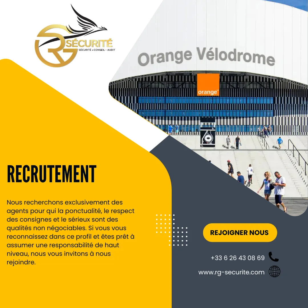 Nous recherchons des agents de sécurité pour le 🔵⚪️STADE VÉLODROME 🔵⚪️